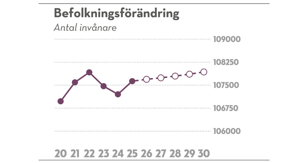 Vad gäller befolkningsutvecklingen i Eskilstuna kommun visar den sedan 2014 på en uppåtgående kurva. Enligt siffror från SCB hade kommunen i slutet av 2024 lite över 107 000 invånare, och sedan 2014 har antalet invånare ökat med 6,2 procent. De närmaste tio åren ligger den förväntade befolkningstillväxten på 1 procent.