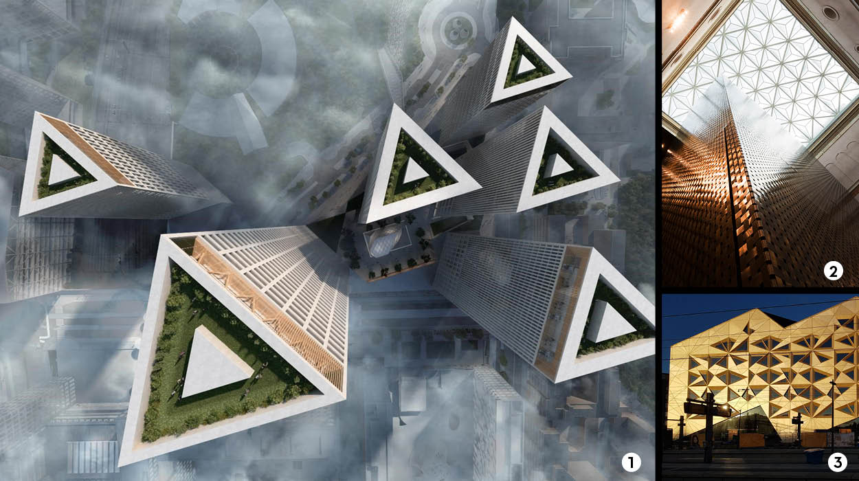 1. Finland ska få sina första skyskrapor. Hela nio stycken till och med, varav den högsta blir 180 meter hög. De triangelformade byggnaderna utgör projektet Trigoni. Bakom står Ramboll och YIT, som vann uppdraget i Helsingfors High-rise design-build competition.