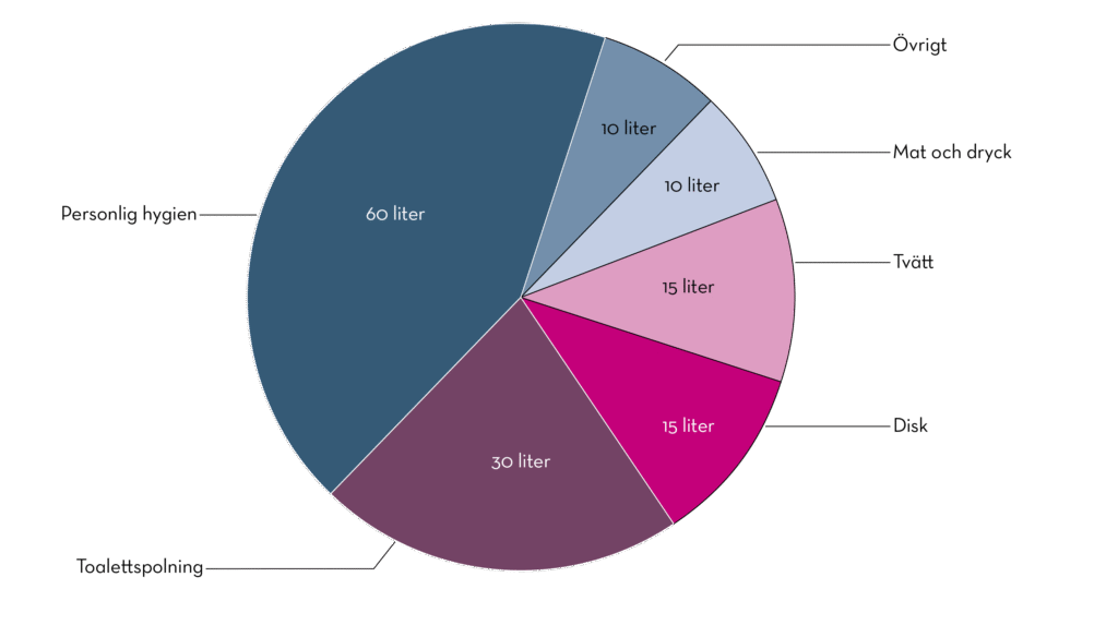 Vattenanvändning i svenska hushåll (hämtat från Svenskt Vatten 2019)