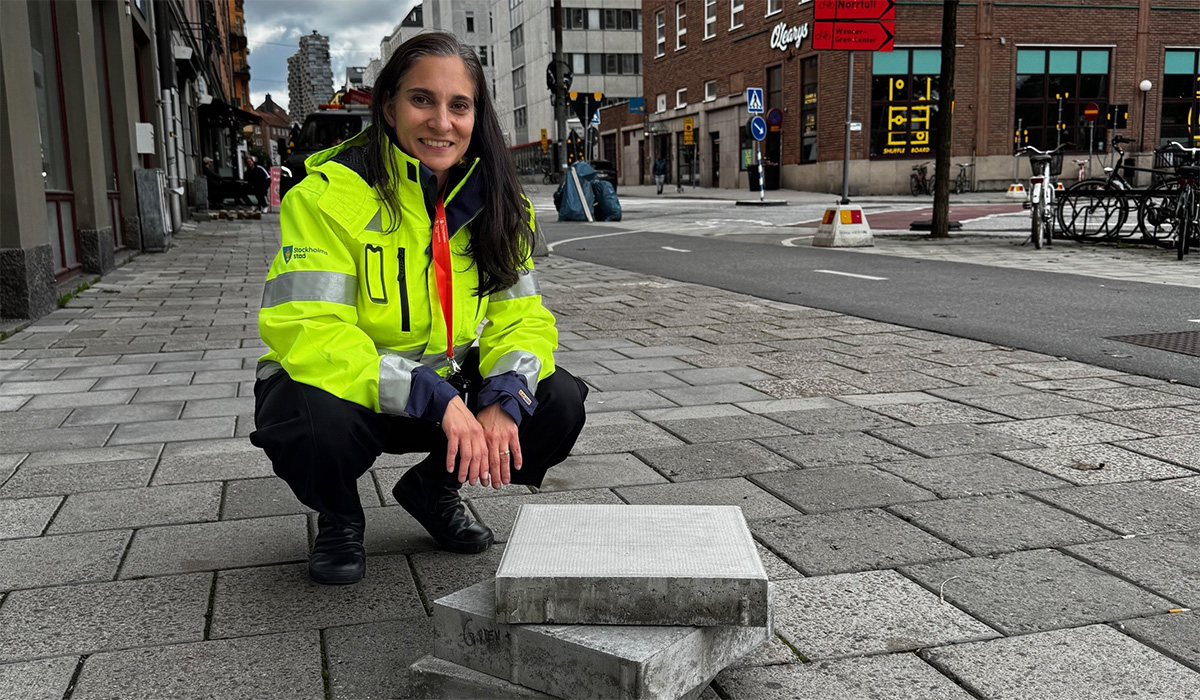 -Vi har analyserat vilka åtgärder som ger störst klimatnytta för pengarna i kommande delar av stadsutvecklingsprojektet Hagastaden och klimatsmartare betongplattor ger bra utdelning. Andra åtgärder som ger stor koldioxidbesparing är att återbruka material vilket vi också gör, säger Mónica Nunes, byggprojektledare Stockholms stad.