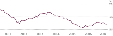 De genomsnittliga direktavkastningskraven för kontors- och handelsfastigheter har fallit tillbaka lite och ligger nu på omkring 5,9 procent, under januari till juni var siffran stabilt runt 6 procent. Dagens nivå är fortfarande högre än de historiskt låga 5,6 procent som uppmättes under sommaren 2016.